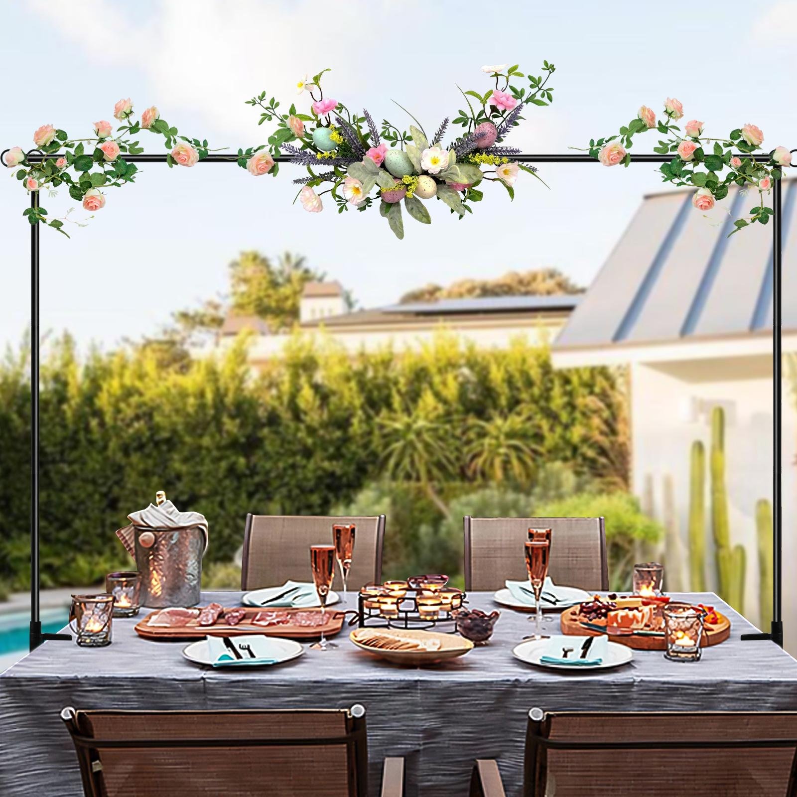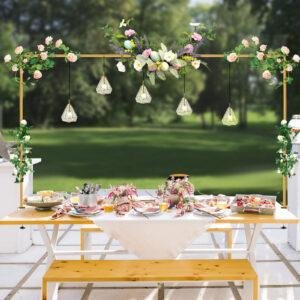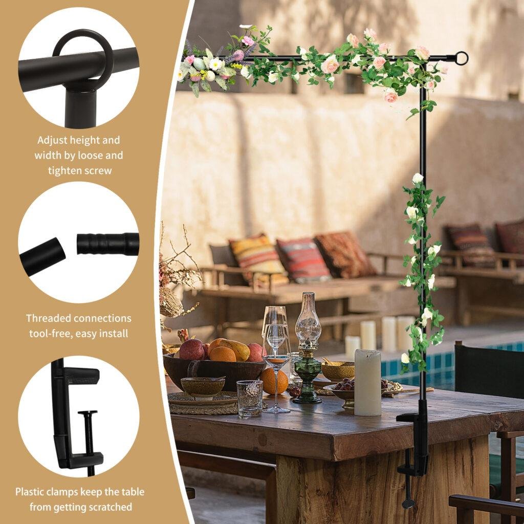 - VERSATILE DECOR FOR ANY EVENT: Perfect your table decoration for weddings, birthdays, baby showers, graduations, anniversaries, BBQs, and seasonal holidays. This table arch stand elevates your table hanging decor rod setup year-round.
